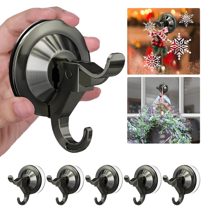 - 【Durable & Stable】No rust, no deformed, no yellow. The high-quality hard plastic and brushed surface give the holders great durability and stability. The suction cup hook is anti-hot-water max 158°F, keeping stable when showering hot water. You can use it to hanging bath sponge, towel, robe, brush, clothes and more.Can also be used on outdoor glass windows Christmas wreath hanger.