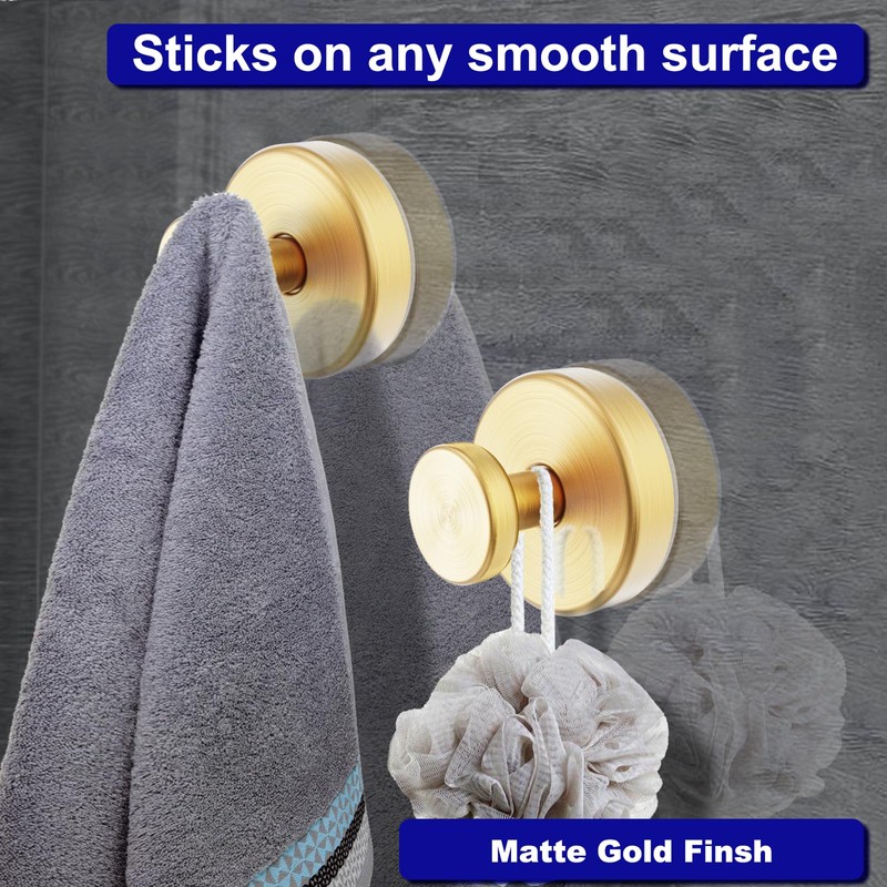 Suction Cup Hooks for Shower, Removable Towel Hooks for Bathroom Window Glass Door Wall, Bath Robe Looafh Hook for Hanging - 2 Pack, Gold