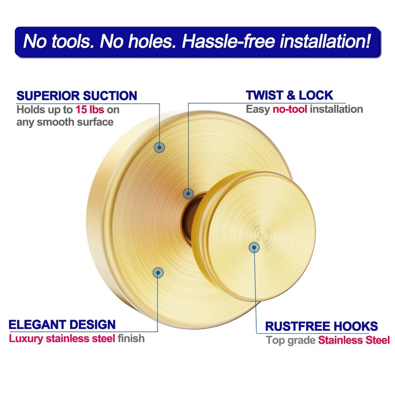 - [Functionality Meets Style]: With a super sticky silicone base and advanced vacuum suction technology, these hooks deliver strong, reliable support. Simply turn the knob clockwise to eliminate air and maximize suction power. Each hook can hold up to 15 lbs