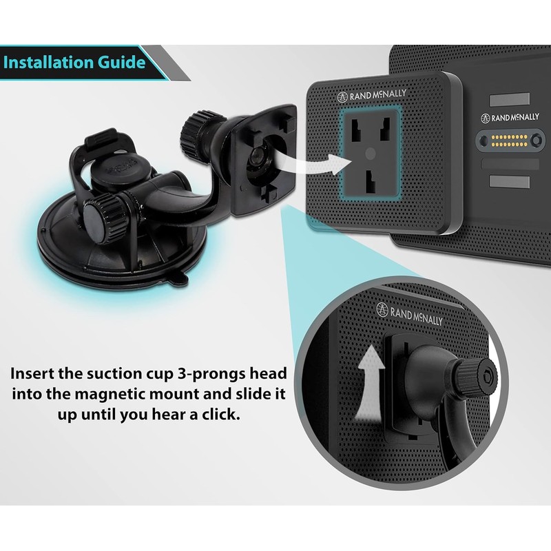 - Secure air pressure suction for a strong hold. Featuring an extra-large vacuum suction cup of 90 mm, this Rand McNally GPS accessory TND Tablet ensures firm attachment to your windshield