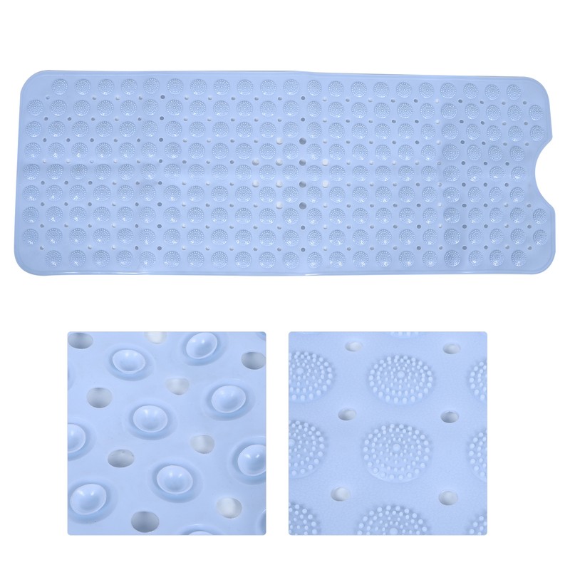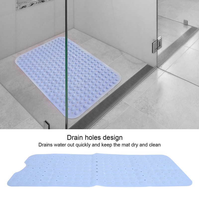 1、Large bathtub mat will cover most length of tub and feels great on the feet. Great for bathtub and shower stalls in homes, gyms, hospitals, hotels, and other living facilities 2、This mat features powerful suction cups that keep mat securely sticks well and stays in place. The subtle textured pattern on the surface keeps you from slipping or falling in the bathtub 3、Good drainage which consists of drain holes drains water out quickly and keep the mat dry and clean 4、Made of durable and safe material which is BPA‑free and latex‑free. It is safe and gentle against skin. 5、Mat only attaches to smooth clean surfaces instead of textured, tiled or non-smooth surfaces. To prevent falls, please moisten the tub with a little bit of water before filling the tub mat, then press the bath mat with your hands to secure suction cups tightly on the smooth bathtub.