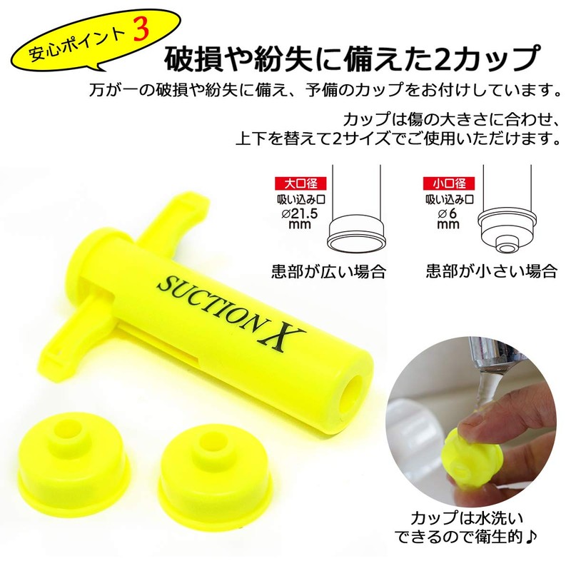 The Suction X is a compact body that is easy to carry, yet is designed to suck poison and extract from the wound with simple operation, making it useful as a first aid device before you receive a doctor.