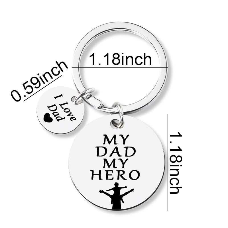 - Best Dad Daddy Father's Day Gifts from Daughter Son: This father engraved keychain is composed of two round pieces, the large one engraved with MY DAD MY HERO, the small one engraved with I LOVE DAD, if you give this best father key chain for dad father daddy men, he will definitely be moved by these heartwarming words, this round keychain is a meaningful fathers day birthday gift for dad father daddy men