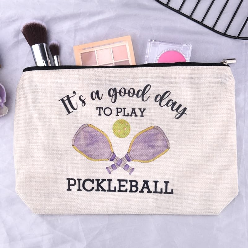 Sudaporn Pickleball Friends Bithday Christmas Gifts Pickleballs Print Makeup Cosmetic Bag Organizer Pickleballs Balls Racket Womens Toiletry Bag It's a Good Day to Play Pickleball Storage Bags Pouch
