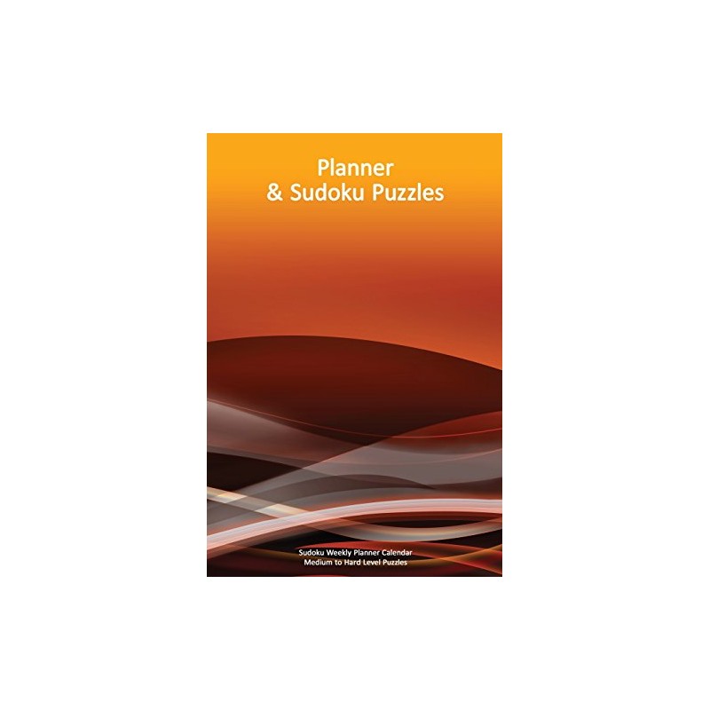 Sudoku Weekly Planner Calendar - Medium to Hard Level Puzzles - Cover Orange Waves (6" x 9"): 56 Weeks Undated Planner + 112 Sudoku Puzzles (56 Medium Sudoku + 56 Hard Sudoku with solutions)