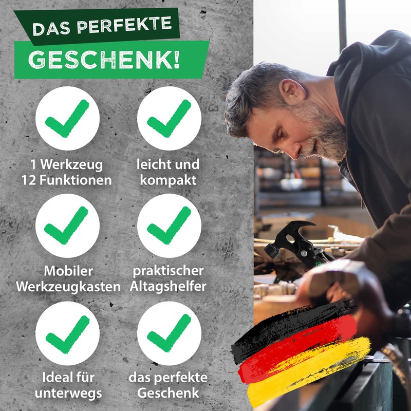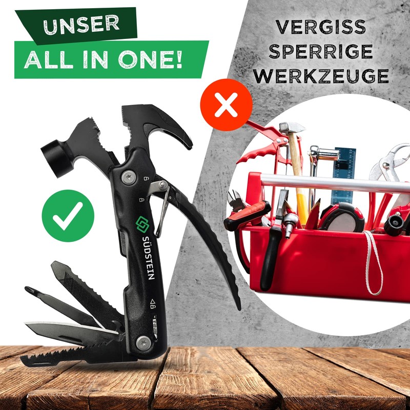 SÜDSTEIN 12-in-1 Multifunction Tool with Hammer, Flat Nose Pliers, Screwdrivers & More - A Special Gift for Men with Elegant Gift Packaging