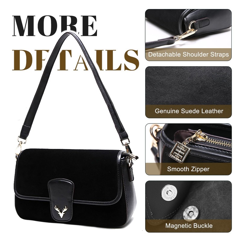 - Genuine Leather Suede Crossbody Bag: This crossbody purse is crafted from high-quality genuine leather suede, adding a touch of luxury to your daily outfits. The suede bag is soft yet durable fabric not only provides a comfortable feel but also ensures the women puese's wear resistance and longevity.