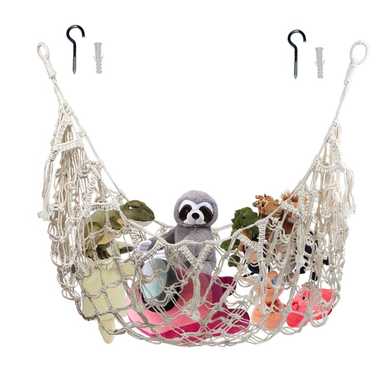 - Our toy storage nets are woven by hand and have an even distribution of the meshes, so that even small dolls cannot fall off easily.