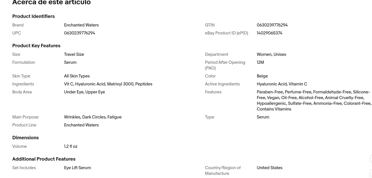 Suero rejuvenecedor y reafirmante para ojos Enchanted Waters, 1.2 oz.
