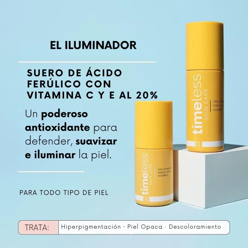 Suero Vitamina C 20% Ácido Ferúlico Vitamina E Timeless Skin Care Antioxidante Aumenta Producción De Colágeno Para Todo Tipo De Pieles 50ml