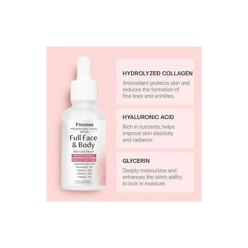 Suero vitamínico para la piel, suero FINONES para rostro y cuerpo, 5 en 1, antiarrugas reafirmante, esencia antienvejecimiento, esencia reafirmante elevadora, hidrata e hidrata y reduce las