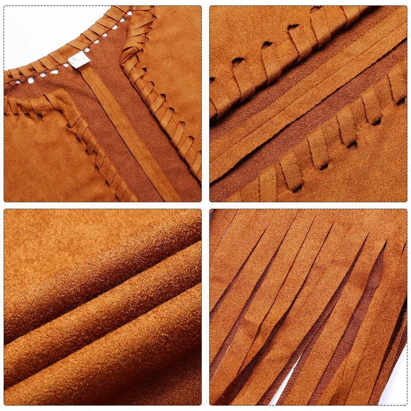 - SOFT AND COMFORTABLE: The hippie vest with fringe for women is well structured and beautifully crafted with a light suede texture that is lightweight, soft and comfortable to wear. This long hippie vest with fringe makes you look elegant and charming. The accessories are made of excellent materials, the crystal headpiece is flexible, beautiful, durable and reusable; vintage sunglasses and earrings can also be used for a long time.