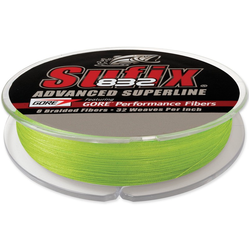 Sufix 832 Advanced Superline is the strongest, most durable small diameter braid on the market. R8 Precision Braiding and fiber technology provides superior strength, roundness and line consistency. Patent-pending construction of 8 fibers (7 Dyneema plus 1 Patent Pending Gore Performance Fiber) and 32 weaves (pics) per inch. Patent Pending Gore Performance Fibers improve abrasion resistance, increase casting distance & accuracy and reduce line vibration. Dyneema fibers provide high strength & sensitivity, hydrophobic water-repellent protection and small diameter.