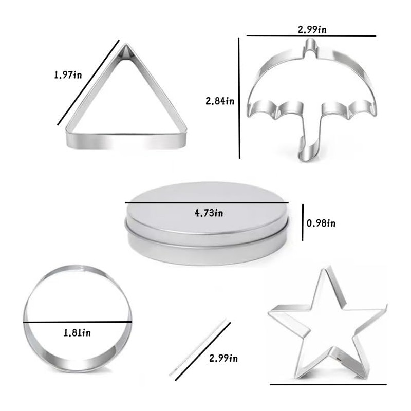UNIQUE SHAPES: This set of cookie cutters includes 4 biscuit cutters in the shape of umbrella, triangle, star and circle one cutting pin and a large round box. Add fun and theme to your biscuits and create a memorable and enjoyable experience for your guests.