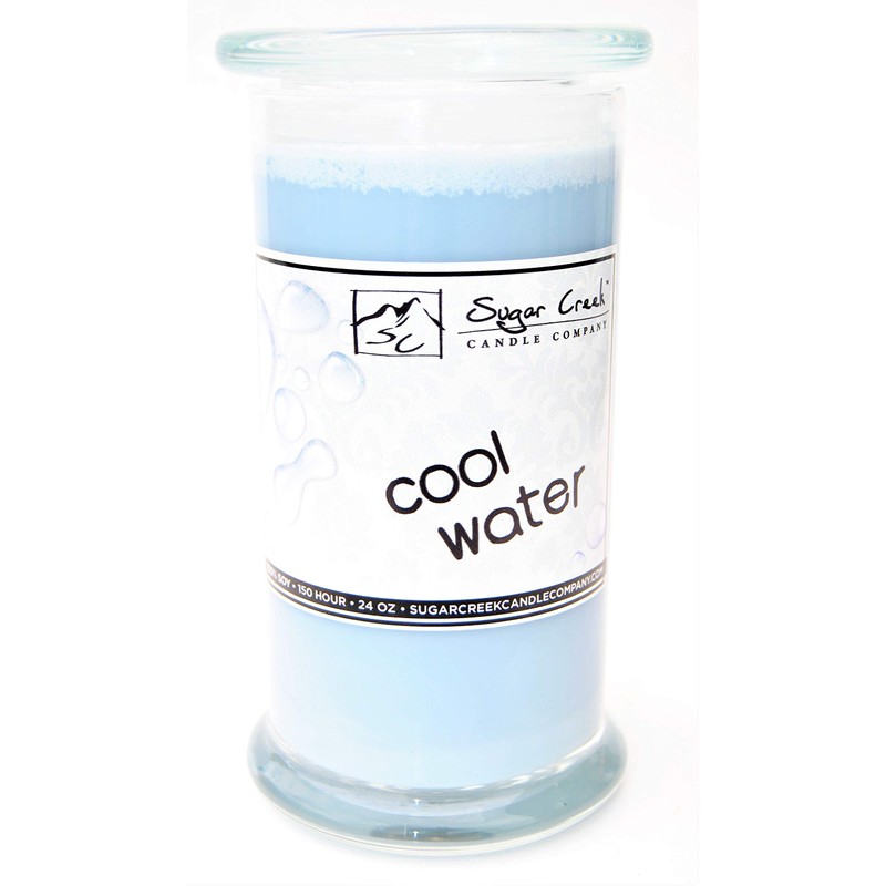 Sugar Creek Candles | Cool Water (Men's Cologne) - 12 oz Glass Top Jar, (75-Hours Burn Time) | 100% Organic Soy Wax, Non-Toxic, Made in USA
