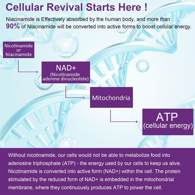 - Vitality Unleashed, Energy Soars: As we age, our energy levels naturally decline. Our 500 mg of Niacinamide is enough to provide your body with normal energy metabolism thanks to Niacinamide being the precursor of important molecules involved in energy metabolism. Additionally, Niacinamide has been shown to support the proper functioning of the nervous system, which can further promote feelings of energy and vitality.
