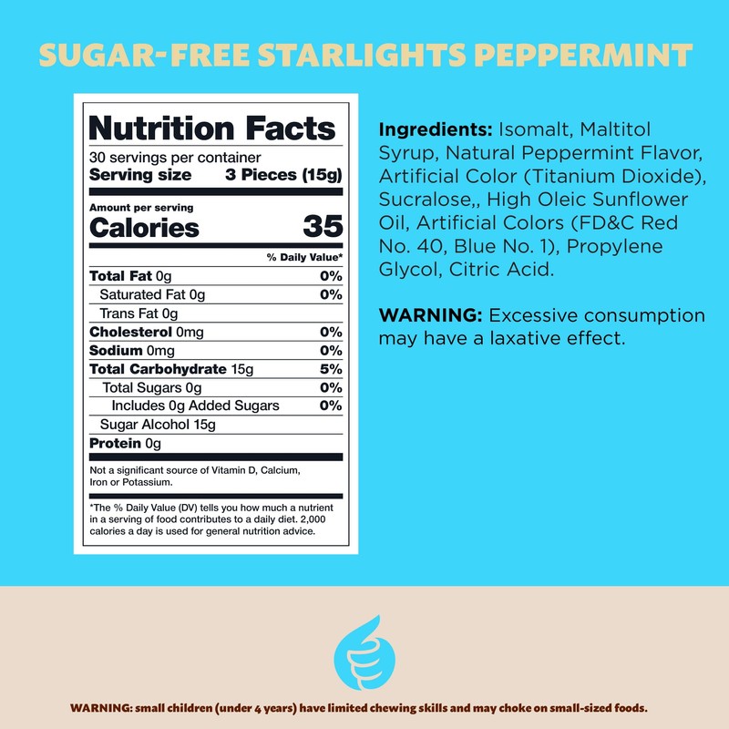 - This bag holds 1 pound of Sugar-Free Starlights Peppermint Hard Candy; approximately 90 individually wrapped pieces per order