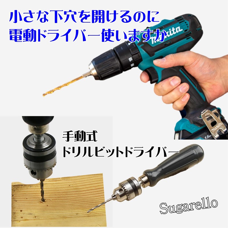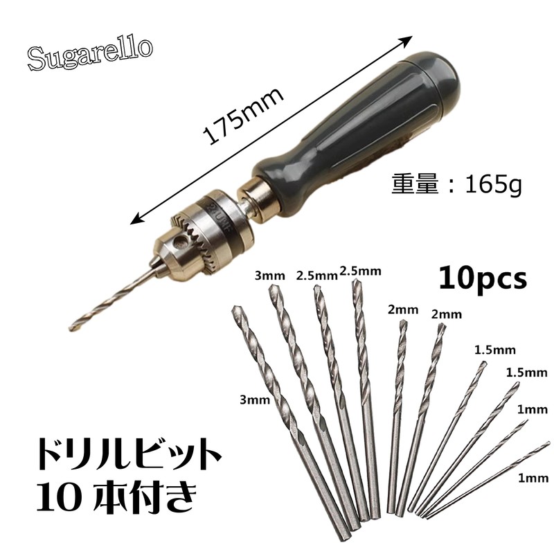 Sugarello Hand Drill, Manual Drill, Bin Vice, Compact Drill, Woodworking, Underdrilling, Craft Tool, Acrylic Processing, DIY with 10 Drill Bits