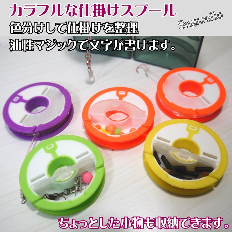 • This set includes a rigging spool and storage case that can store fishing riggs. There are variations of 6 and 12 storage types