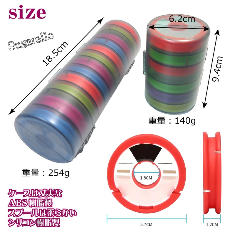 The case is made of durable and unbreakable ABS plastic. The magnet stops so the case will not be accidentally opened. Please refer to the images for sizing and other information. Spool colors are random. Wish you have fun fishing and big fishing.