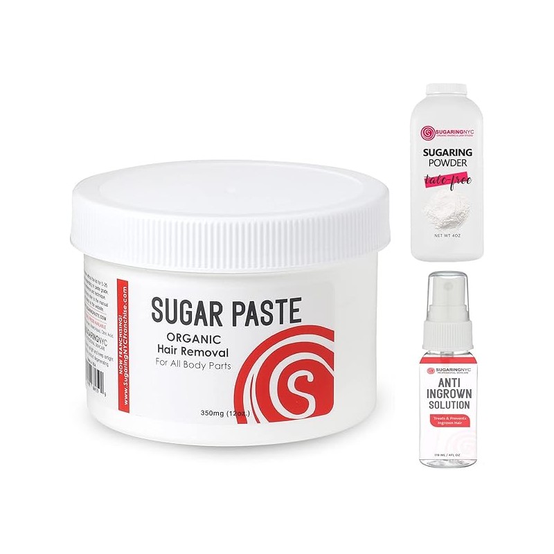 Sugaring Waxing - Hair removal paste for home use for beginners Brazilian Bikini, Legs, Arms (kit with Sugaring Drying powder, Anti-Ingrown Solution by Sugaring NYC).