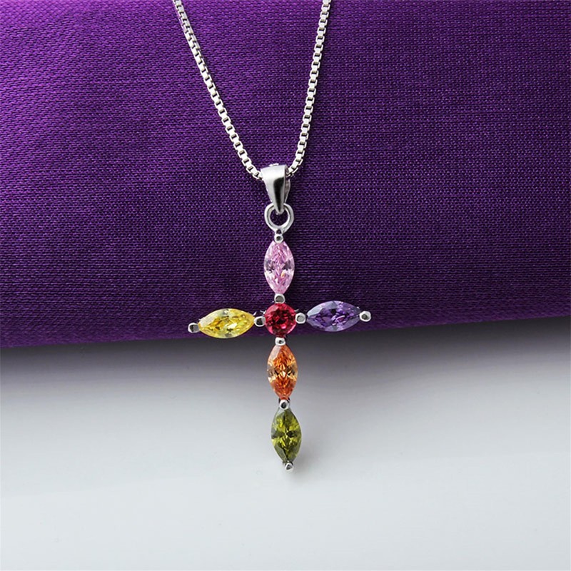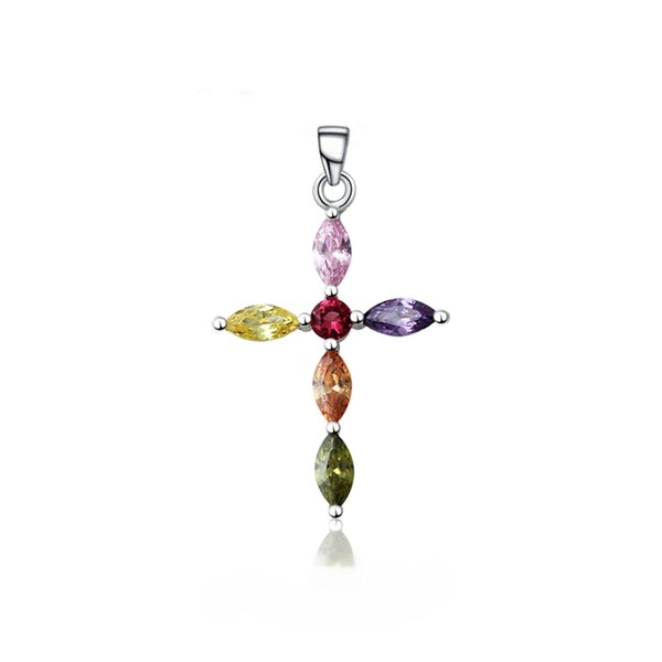 - Sterling silver multi-colored CZ cross necklace pendant