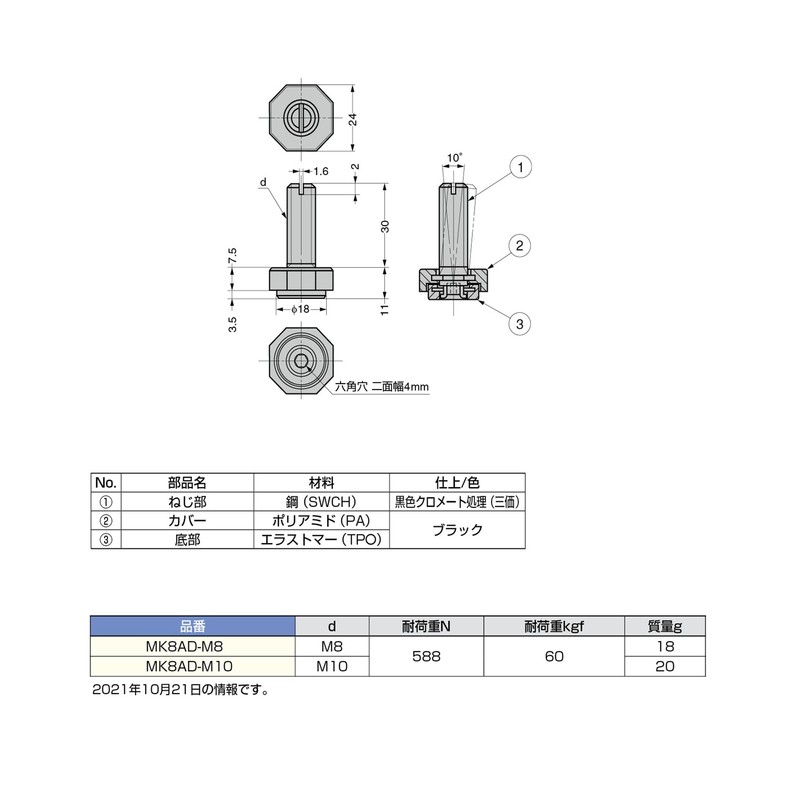 Sugatsune Industry MK8AD-M8 Lamp Mark, Octagonal Adjuster, with Oscillating Mechanism