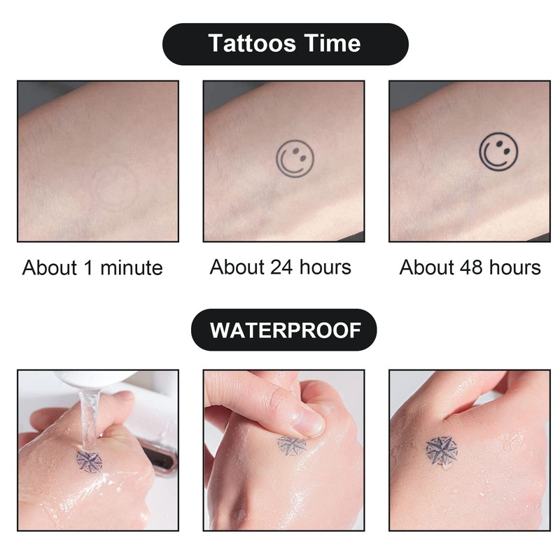 - New technology: most temporary tattoos can last a few days at most, but we use a new transfer printing technology so that temporary tattoos can penetrate deep into the skin surface, so that the tattoo can last longer (7-14 days) and the experience is even better!