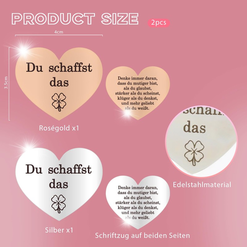 Sugeru® 2 x Courage Gift Lucky Charm with Bag – Du Schaffst Das | Pocket Hug, Lucky Charm for Children, Colleagues, Encouragement, Best Friend, First Day at School Change, Get Well Soon (Ⅱ)