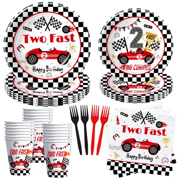 Suhelkit Race Car 2nd Birthday Party Decorations Tableware - Red Two Fast Birthday Decorations Party Supplies, Paper Plate, Cup, Napkin, Fork, Two Fast Two Curious Birthday Decorations Kids | Serve 24