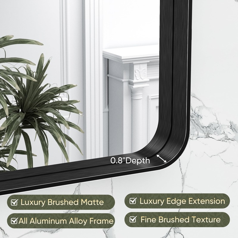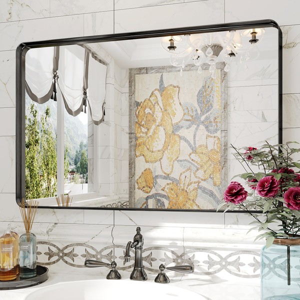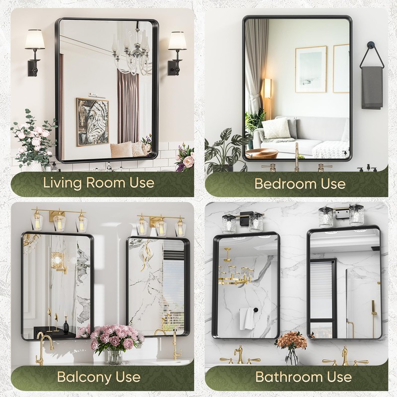 Suidia Bathroom Mirror, 24" x 36" Wall Mounted Vanity Brushed Rounded Corner Metal Framed, Rectangle Bathroom Vanity Mirror, Tempered Glass, Anti-Rust, Horizontal/Vertical