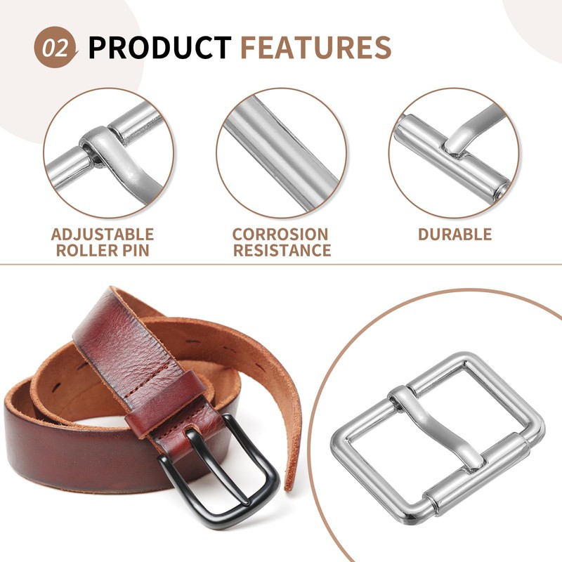 - Metal Roller Buckles: There are 5pcs of single prong belt buckles in the package, it is suitable for belt width of 38mm/1.5inch, and the overall size is 29x46mm/1.1x1.8inch(L*W).