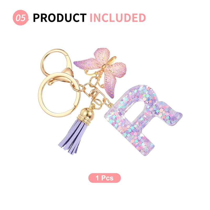 SUIKIHUM Initial Letter Keychains, (10.5cm/4.13" Mini Letter Butterfly KeyChain) Resin Tassel Pendant Car Keychain for Wallet Handbags Backpack, Purple (R)