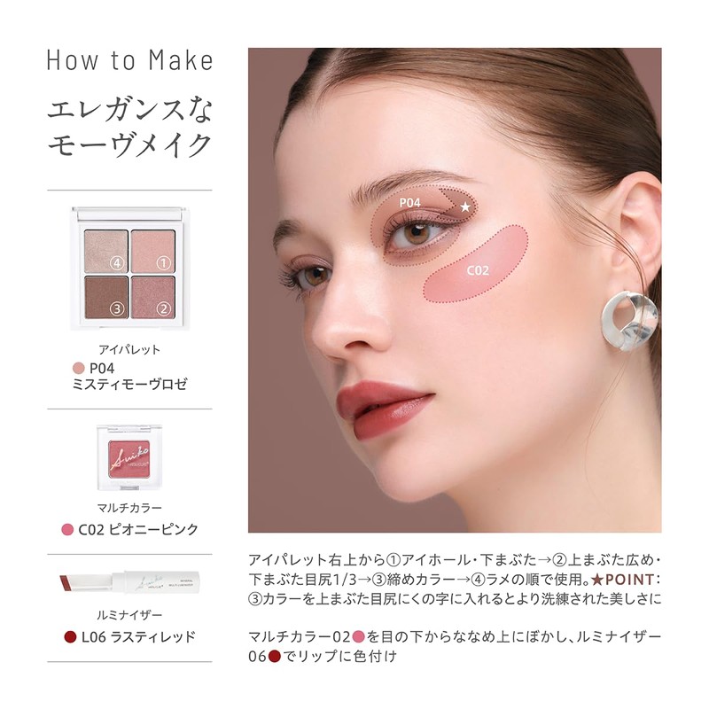 - "Subdued luxury" nuanced colors that bring out the original personality and create a dignified beauty. Move Pink is the key color and every blink brings out the original beauty of elegance and sophistication