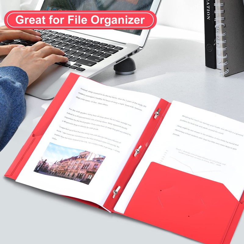 - 【3-prong with Fasteners】:The three prongs with fasteners allow for easy fastening of 3-hole punched letter size folders.