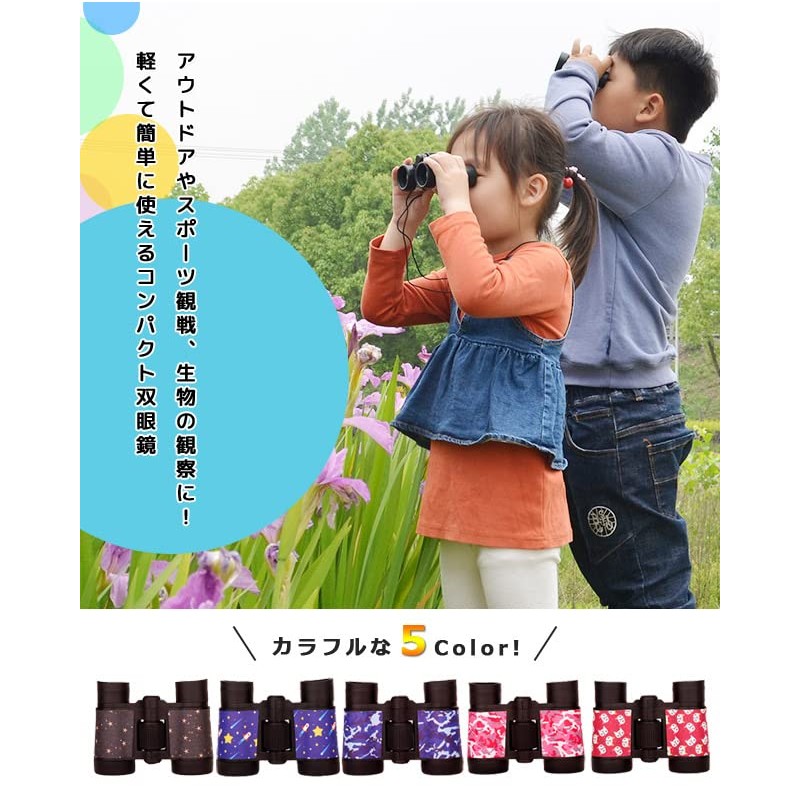 Suitcase Company GPT Binoculars for Kids, 4x Zoom Magnifier, Strap, Illustration, Cute, Compact, Observation, Small, Lightweight, Outdoor Toy, Boys and Girls, Camouflage Blue