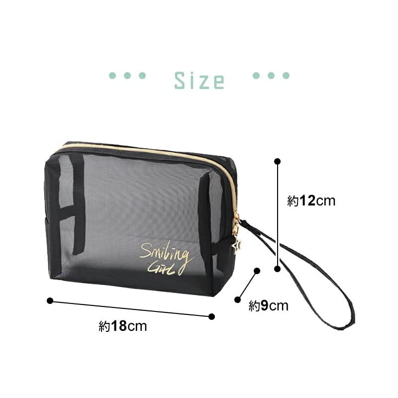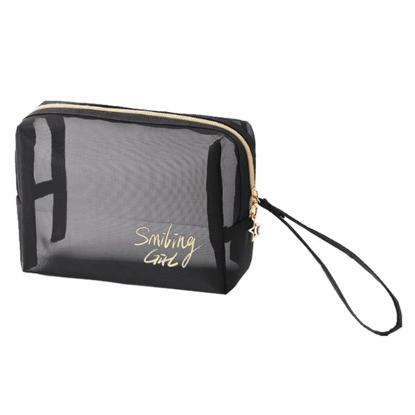 - The gold logo and star charm add a stylish accent. Fashion black mesh storage pouch with visible contents A box type with a sturdy gusset that can be stored in a large capacity. It can be used for a wide range of purposes, such as cosmetic pouch, face wash pouch, travel pouch, etc