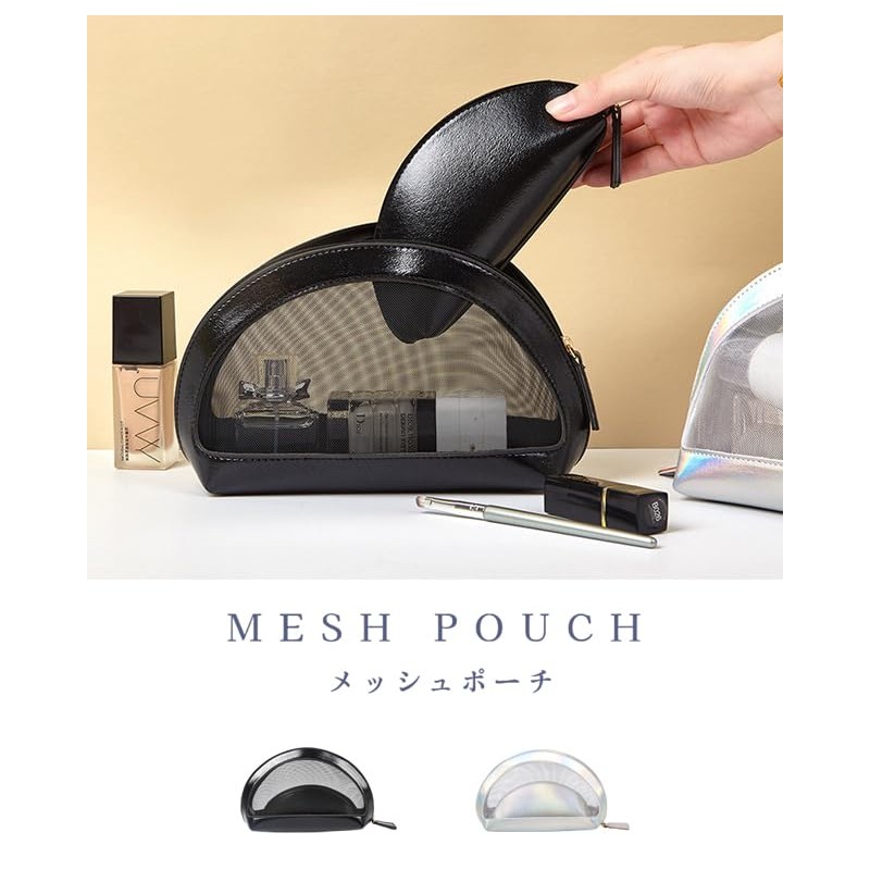 Suitcase Company Pouch, Travel Pouch, Cosmetic Pouch, 2-Piece Set, Mesh, Large and Small, Travel, Cosmetics Storage, Small Items, Makeup Pouch, Translucent, Visible Zippers, Silver