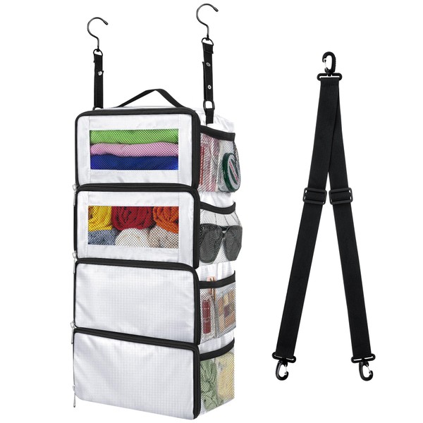 Suitcase Organizer, Carry on Closet Luggage Organizers Accessories for Travel, Foldable and Hangable Portable Hanging Travel Shelves with a Shoulder Strap to Use As a Travel Backpack Small, White