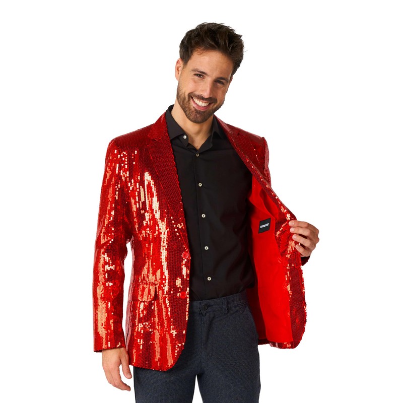 - SHINY RED: Are you looking for an outfit that will leave a lasting impression? A shiny red suit is a surefire way to achieve that! The sequins show your sense of style and thanks to the high quality and perfect fit, you look really good.