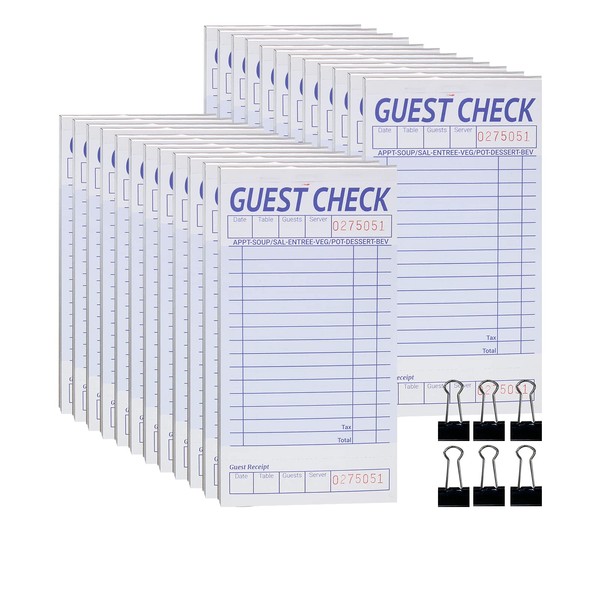 - Package Include: 24 pack guest check boards/pads, 50 checks per book for total 1200 guest checks, 1 part guest check booked with 15 lines. Come with 6 clips.