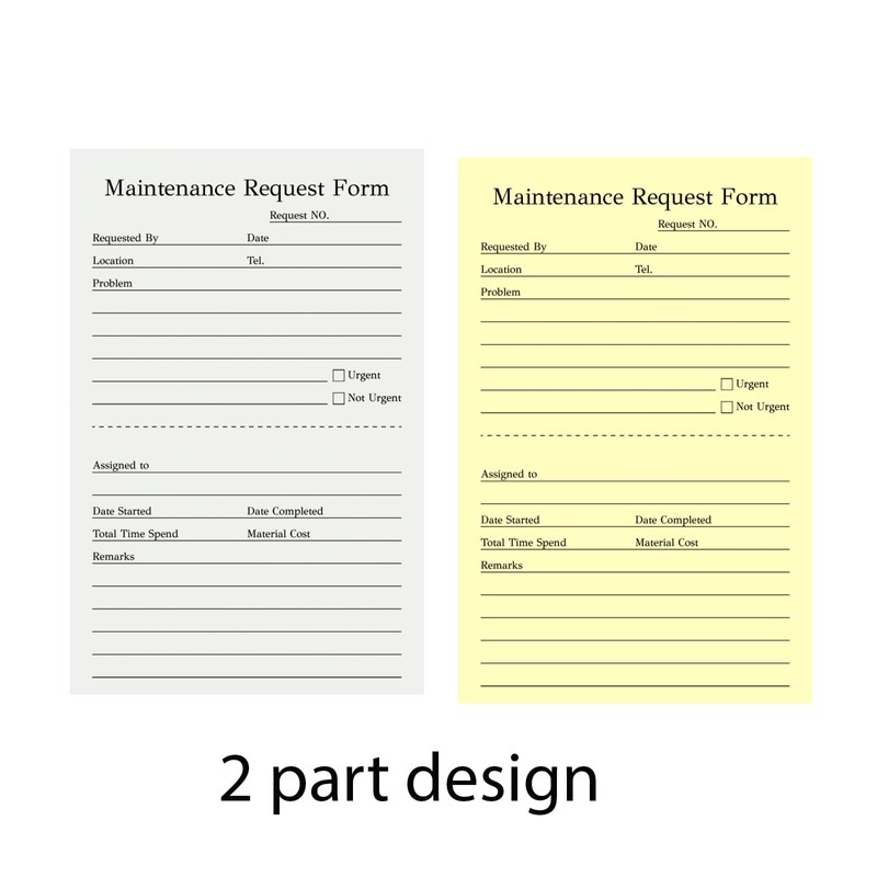 - Material: Maintenance request forms are made of premium paper that tears off easily along the perforation, but does not fall out and transfers perfectly to yellow copy paper.