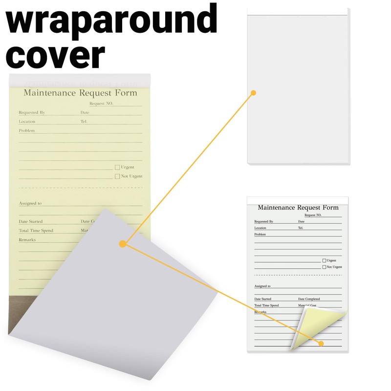- A wraparound back cover: Fold the back cover between sets to keep invoices neat and legible. Also preventing ink from bleeding.