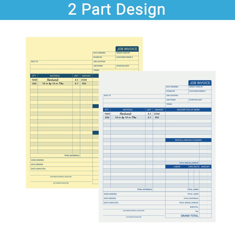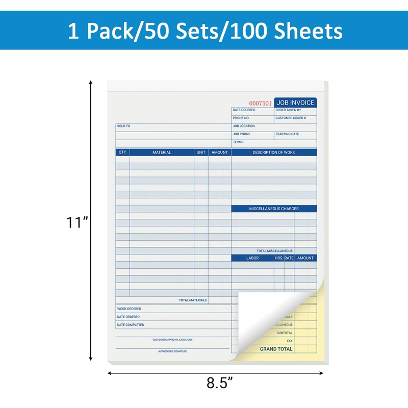 - Package Include: 1 Pad job invoice forms, 2-part carbonless, 50 sets per pad