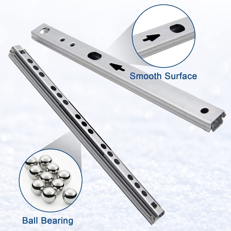 - 【Novelly Designed】 -- 2 Sections, with ball bearing drawer slides in the ball positioning groove which can stable ball sliding direction, not easy to derail, with multiple fixed hole positions for easy installation and adjustment.