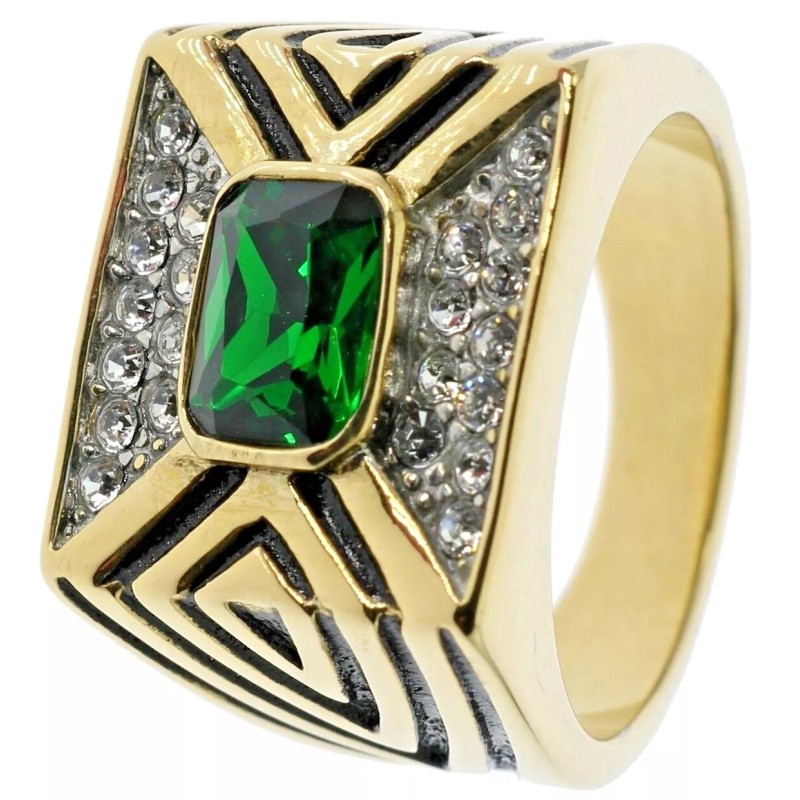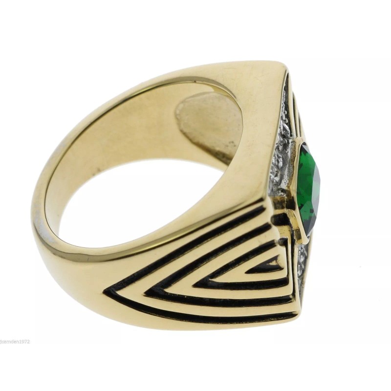 Sujak Celtic Shield Emerald Simulated Cz Accent 18K Gold Overlay Mens Ring Size 12 T53