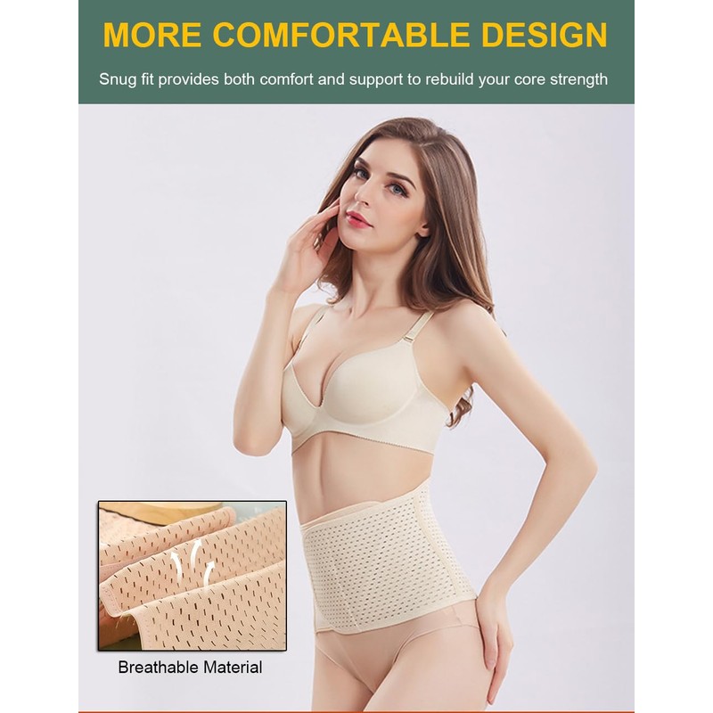 SUJAYU Abdominal Binder Post Surgery, Breathable Belly Band Postpartum Belly Wrap, C Section Belly Binder Abdominal Binder Hernia Belt for Women, Back Support Belt for Women (Beige, Large)