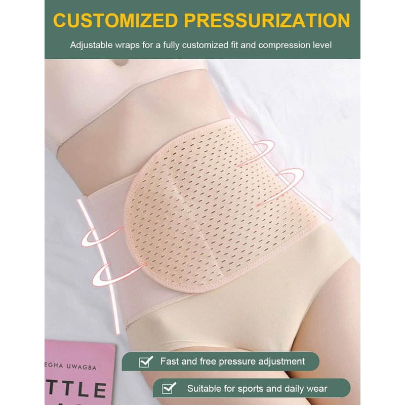 SUJAYU Abdominal Binder Post Surgery, Breathable Belly Band Postpartum Belly Wrap, C Section Belly Binder Abdominal Binder Hernia Belt for Women, Back Support Belt for Women (Beige, Medium)