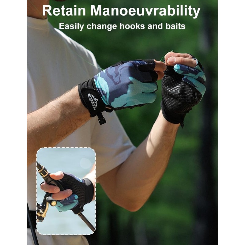 - 3-cut Exposed Fingers - Our fishing gloves retain manoeuvrability and dexterity of your hands to easily change hooks and baits. These fingerless gloves are suitable for fishing, kayaking, hiking, paddling, rowing, driving, canoeing, paddle board, running, cycling, camping, and outdoor sporting activities.