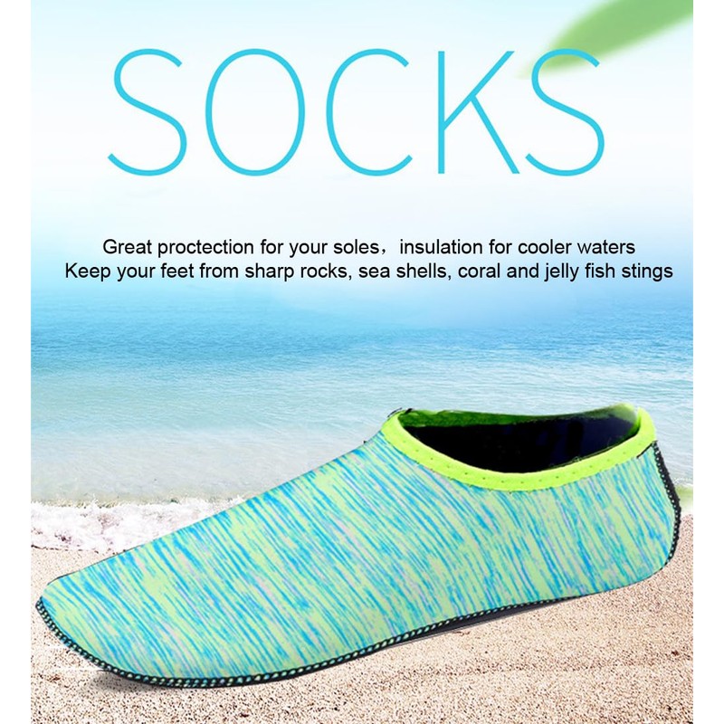 - Dry Off Quickly - Quick-dry sand socks, ultra light weight smooth stretchy fabrics and easy slip-on design make it convenient to wear and take off. Glued blind stitched seams and fit tightly to the skin, could minimize water coming in, BUT NOT 100% WATERPROOF!